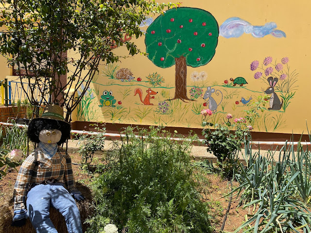Aún seguimos trabajando en este mes con nuestros proyecto de huerto escolar, y en esta ocasión ha tocado elaborar el mural que decorará nuestro huerto. Ha costado mucho encontrar pequeños huequitos, e incluso tardes, para ir haciéndolo. Pero al final lo hemos conseguido y ha quedado fenomenal. Gracias a las dotes artísticas de Lucía, nuestra PT, sin ella no hubiera sido posible. Nos sentimos orgullosas de nuestro trabajo, siempre en equipo en se trabaja mejor. GRACIAS LUCÍA. Espero que os guste. El dibujo es de la portada del cuento motivador a realizar este proyecto de huerto en infantil.